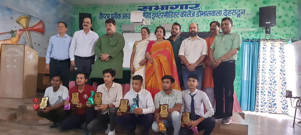 देहरादून, 30 अप्रैल। आज अक्षय तृतीया के अवसर पर समिति द्वारा राजकीय इन्टर कॉलेज डोभालवाला में 10वीं और 12वीं की परीक्षा में उत्तीर्ण आए प्रथम तीन छात्रों को सम्मानित किया गया। कार्यक्रम में स्कूल के प्रिन्सिपल सुरेंद्र सिंह बिष्ट, स्कूल के अध्यापकों के साथ समिति के अध्यक्ष आकाश भट्ट, सचिव श्रीमती सुहिता कुठारी, संरक्षक श्रीमती निरुपमा पांडे, प्रबंधक राघव पंत, सदस्य एवं सहयोगकर्ता उमेशवर रावत, स्वयंसेवक स्वामी एस. चंद्रा उपस्थित थे।