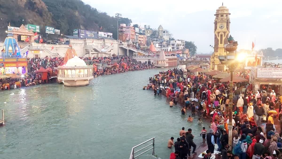 माघ पूर्णिमा के अवसर पर हरिद्वार में ब्रह्म मुहूर्त में गंगा स्नान करने के लिए श्रद्धालुओं की भीड़ उमड़ी
